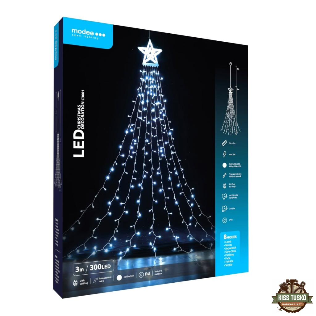 Modee Karácsonyi LED Dekoráció Adapteres C3001 (300LED/3m) cold