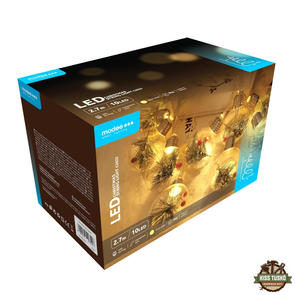 Modee Karácsonyi LED Füzér Dekor Adapteres C2022 (10LED/270cm/30cm) warm