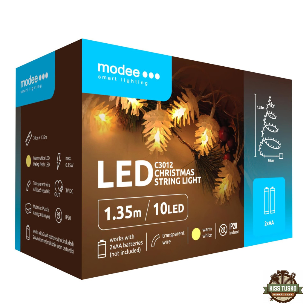 Modee Karácsonyi LED Füzér Dekor Elemes C3012 (10LED/135cm/15cm) warm