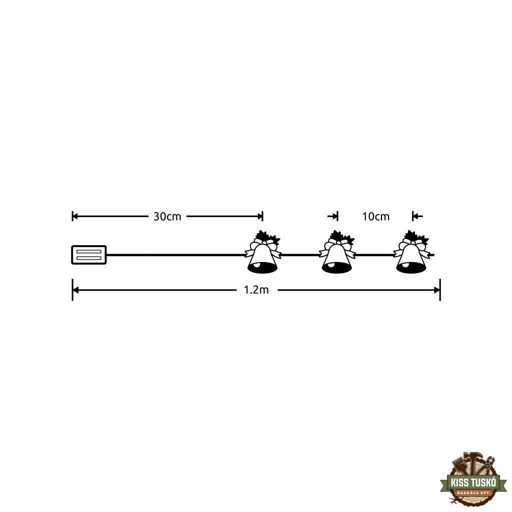 Méreteit tekintve 120 centiméter hosszú és összesen 10 LED chip van rászerelve. A harang formájú izzók 10 centiméterenként helyezkednek el. A  füzérhez 30 centiméteres kábellel egy elemtálca csatlakozik, amelybe 2 darab ceruza (AA) méretű elemet helyezve tudjuk használni a fénysort. Amennyiben ilyen méretű elemből jó minőségű, tartós változatot helyezünk a készülékbe, az akár 3 napot is bír folyamatos használat mellett.