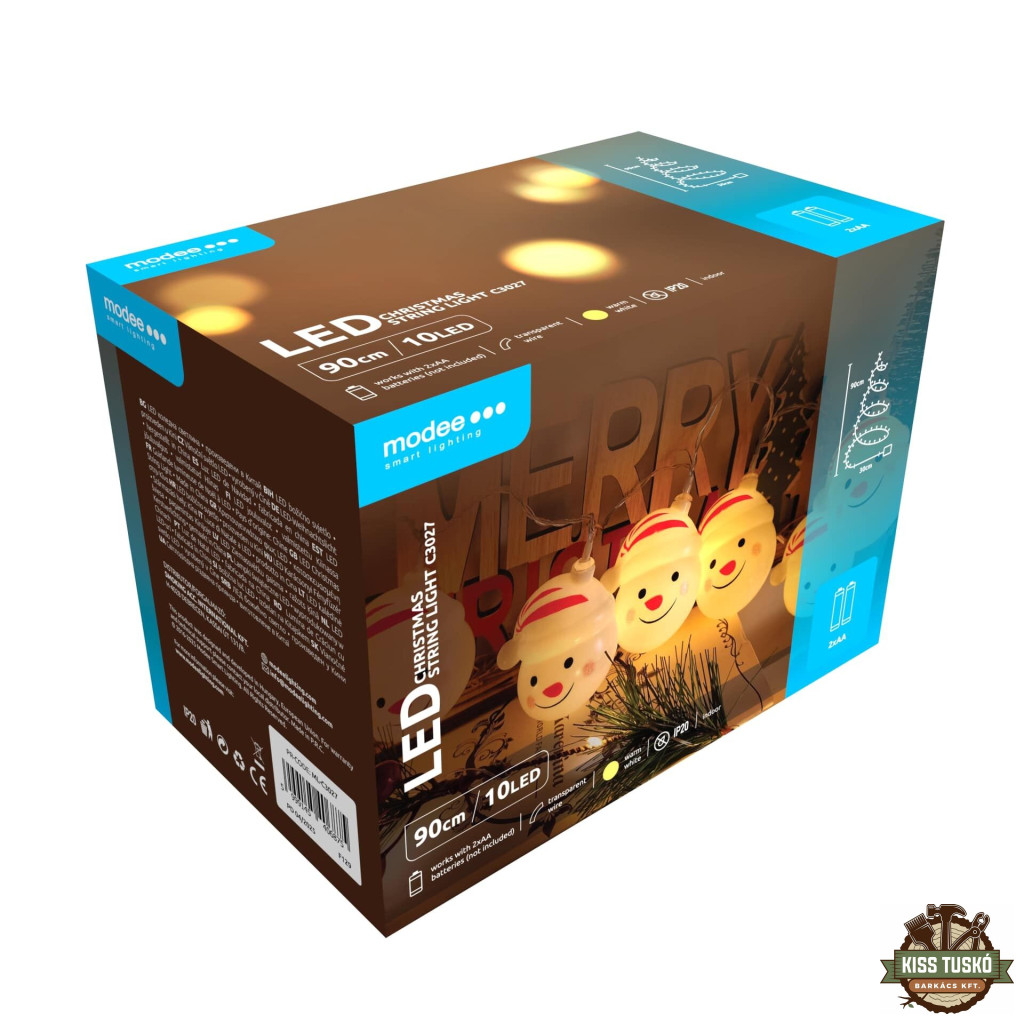 Modee Karácsonyi LED Füzér Dekor Elemes C3027 (10LED/90cm/10cm) warm