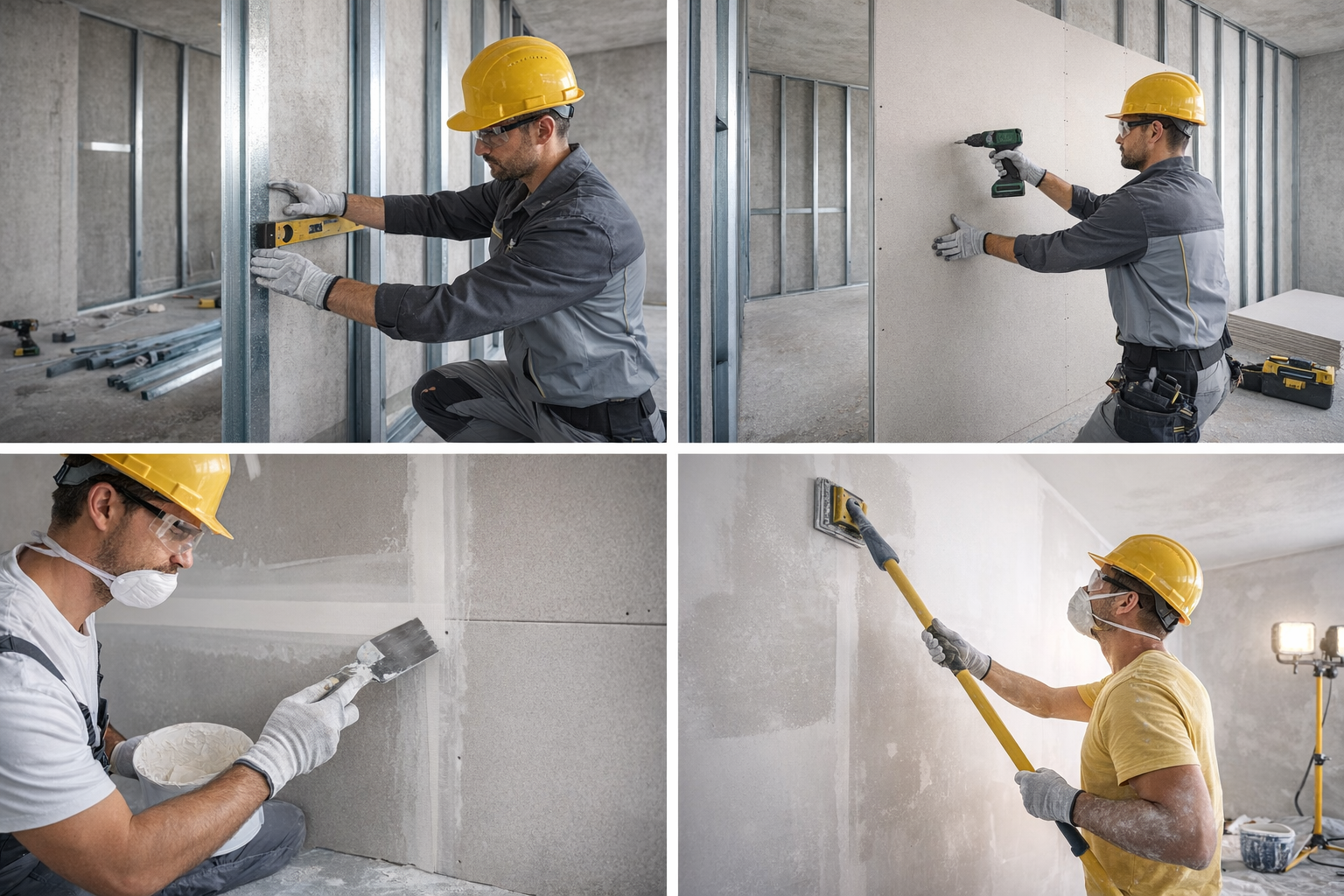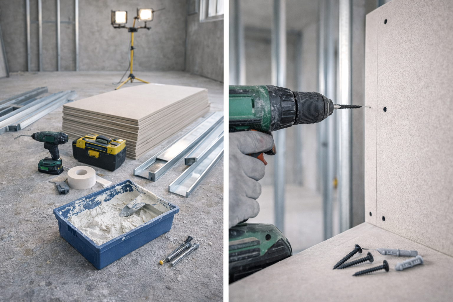 - Fémprofilok (CD, CW, UD, UW) – horganyzott acél váz szükséges.